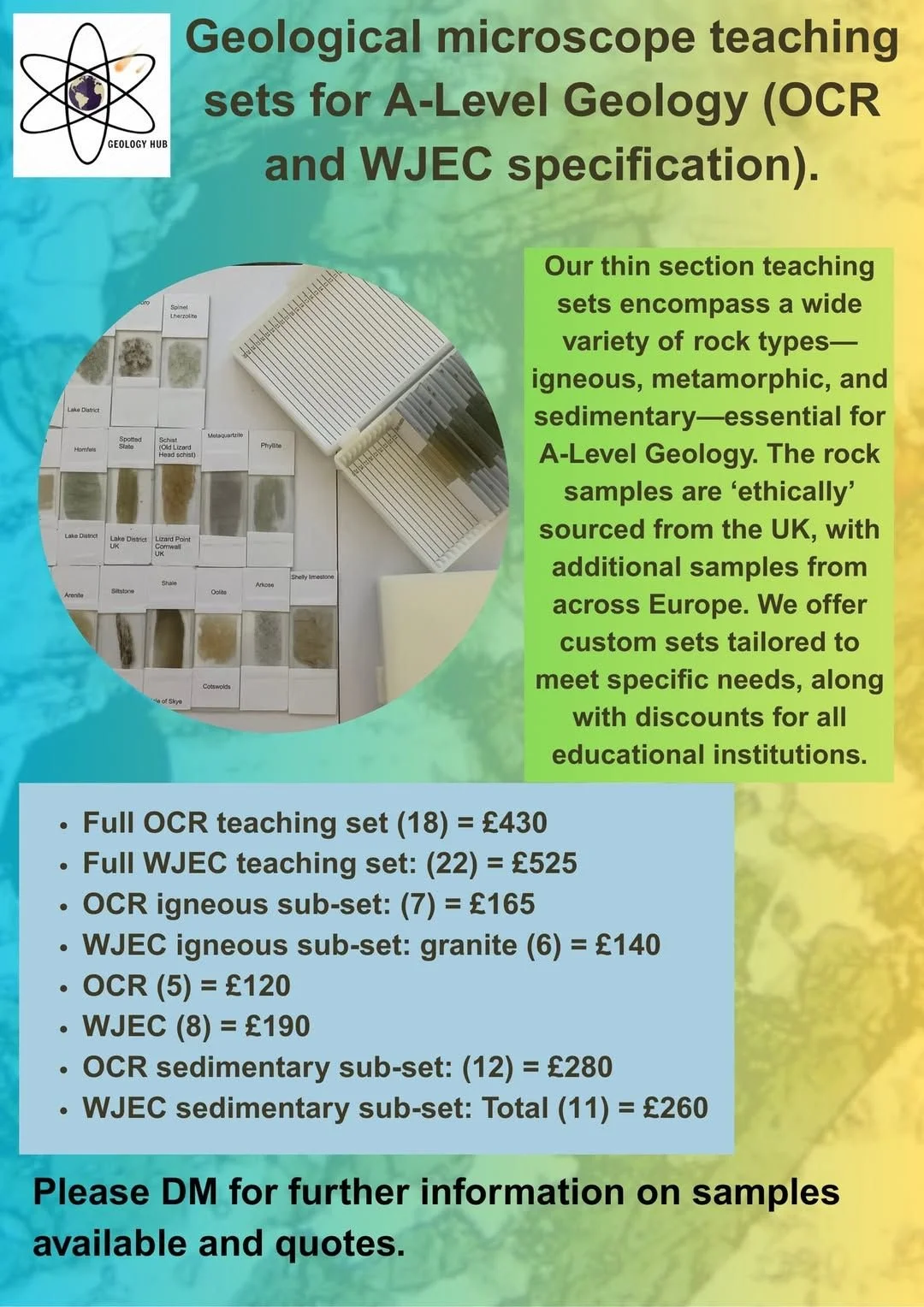 For any teaching thin section requirements, please contact - on 07932 814 758 or email:geologyhubuk@gmail.com